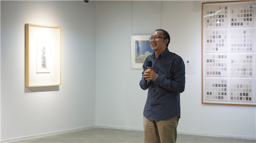 硕士生导师陈浩发言表示,感谢各位老师对11位参展作者的支持。11位作者是分别来自国内4所院校和国外3所院校的同龄人,他们的探索体现了中西艺术的碰撞。同时,这一过程可引发对教学改革的思考,即如何在基础教育中包含对每个人独特的个性、观察视角的保护和延续。