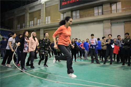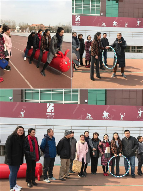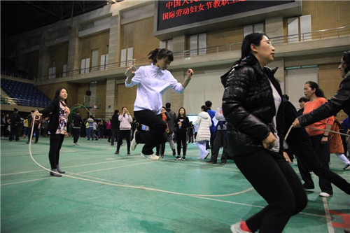 庆祝“三八”国际妇女节教职工趣味运动会。我院40余名教职工积极报名参加比赛,在工会主席钱军老师的组织带领下,参与了此次趣味运动会的全部项目,包括乒乓球接力、呼拉圈接力、毛毛虫竞速和3分钟8字集体跳绳。我院王建书记、别敏副书记亲自到场为参赛选手们加油助威,更是令大家精神振奋、斗志昂扬。