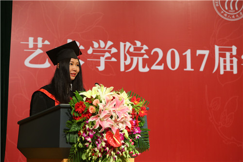 2017届毕业生熊倚加同学代表全体毕业生发言,表达了对各位老师、同学和家人所给与的支持的感谢,回顾了自己在动漫A片