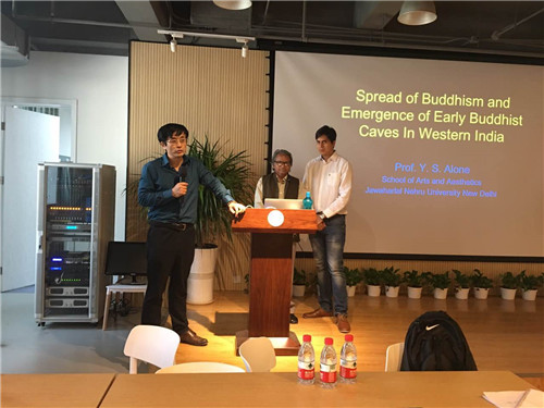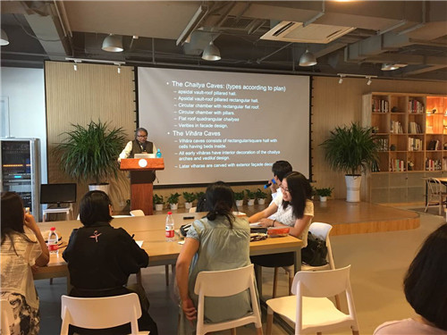 此次邀请的专家是印度尼赫鲁大学教授阿罗恩先生,他带来了四个部分的讲座,分别是《佛教石窟艺术的起源》、《印度早期佛教石窟艺术》、《佛教石窟艺术的转折》、《阿旃陀佛教石窟艺术》。