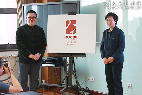 章叶青校友方案以毛泽东同志书法中的“人”和“大”字为渊源,加以变形运用,形成了“人大”“八十”相融合的形象符号,简洁大方,底蕴深刻。郑晓红副教授方案源自人民大学英文缩写“RUC”的组合,形成“80”字样,构思巧妙,现代感强。两套方案相互补充,相互呼应。前者主要运用于重大活动、学术会议等场合,后者主要运用于志愿服务、文体活动等场合。