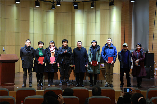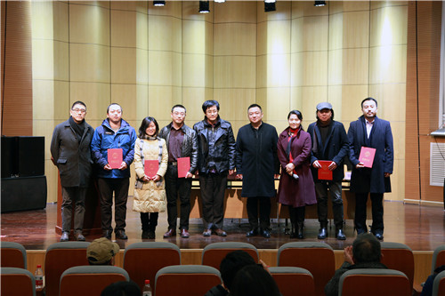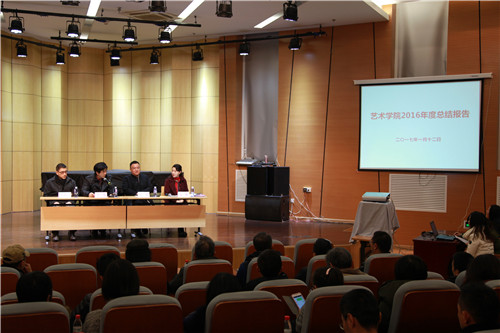 大会第二项议程,丁方院长为2016-2017学年第十次党政联席会议研究通过新上任的系主任、系副主任颁发了聘书。随后,音乐系主任张放与设计系主任陈炯作为系主任代表做工作总结,从教学活动、科研项目、学术交流、系内大型学术及实践活动、师生的获奖情况以及学科发展规划等方面进行汇报与总结,并安排2017年新学期的工作计划;绘画本体研究工作室负责人王家增、艺术策划与传播工作室负责人顾亚奇作为导师工作室负责人代表,从本学期承担的动漫A片发展工作与工作室自身建设两个层面进行总结,并安排2017年工作计划。