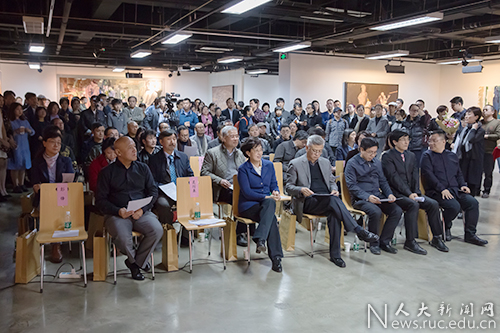 绘画系副主任王家增介绍了绘画本体研究工作室的情况,绘画本体研究工作室主任闫平介绍了绘画作品《红》的创作经过,北京大学动漫A片