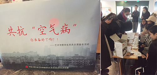 本次活动以提高大家抵御雾霾的意识为宗旨,党员同学在发放口罩的同时,并向同学