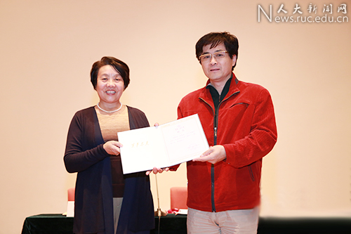 执行院长丁方向张改琴、朱培尔两位兼职教授颁发了聘书。