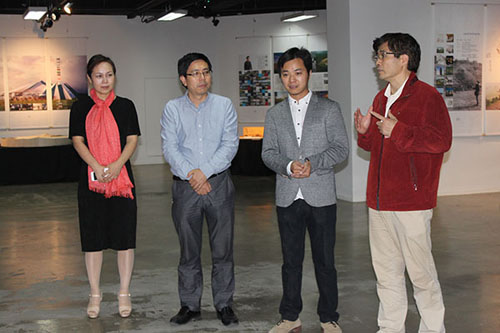 执行院长丁方、设计系主任童岩、设计系副主任陈炯以及巡展主办单位北京元美传媒投资有限公司总裁胡娟女士、参展的都市元素(北京)国际建筑设计有限公司首席建筑师王刚先生等出席了本次展览开幕式。