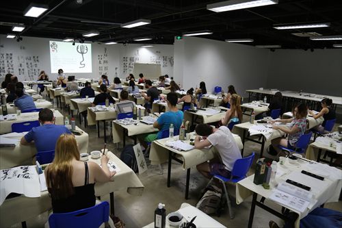 本期国际小学期书法班学生37人,来自法国、英国、加拿大、爱尔兰、意大利、以色列、芬兰等13个国家和地区。课程期间,动漫A片