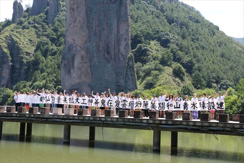 另外国际书法班师生为仙都风景区创作以歌颂仙都美好风光为主题的巨幅书法长卷
