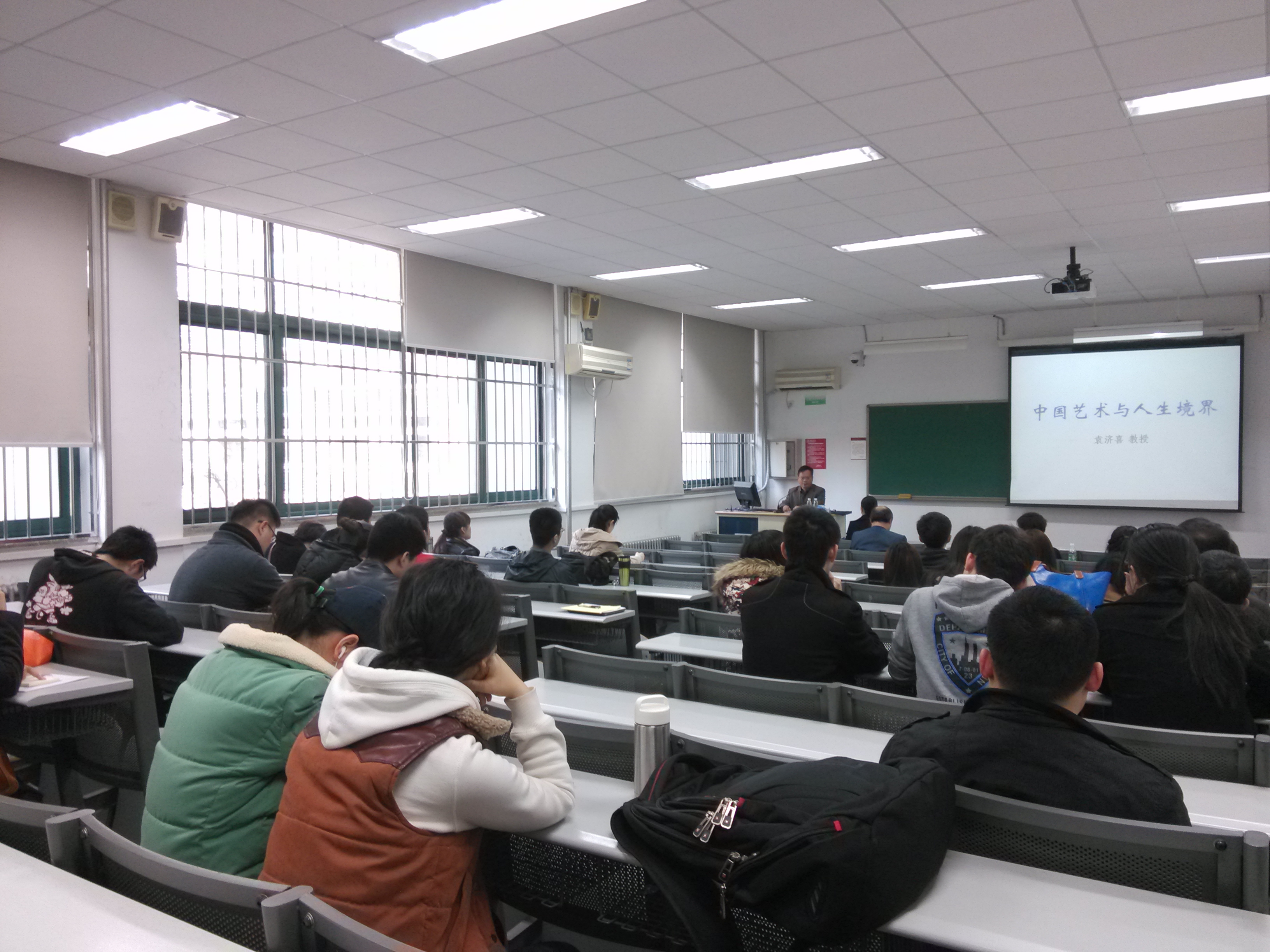 2013-2014春季学期主题党日活动暨第八期院党校第二次课程于教学三楼3102教室举办。动漫A片师生党员及院党校学员参加了本次活动。本次活动采取了讲座的形式,由国动漫A片副院长袁济喜教授主讲,题目为《中国艺术与人生境界》。讲座由院党委副书记别敏副教授主持。