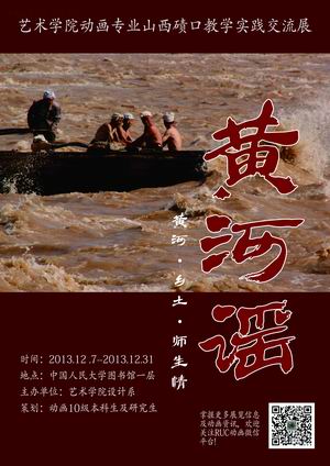 设计系动画专业筹划、以《黄河谣》为主题的“走出课堂”——山西碛口实践性教学交流展在图书馆一层拉开帷幕,展期为一个月。此次展览,不仅用图片介绍了学生们利用3D、航拍等先进技术手段进行实践的过程,还特别利用“RUC动画”这一微信公共平台与观众互动,用声音与图文配合的方式极大地丰富了观者的体验。