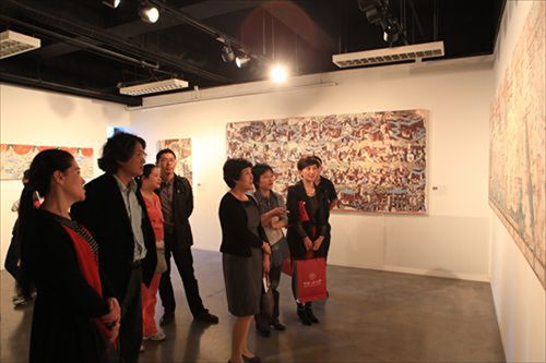 400余平米内的展厅,每天观众都是络绎不绝,展厅内既有端坐在画案前临摹的研究生,也有趴在地上临摹的小学生;既有驻足观看者,亦有席地而坐仰望者。对于美术馆内出现的种种“怪象”,本次展览的策展人、我院绘画系主任黄华三教授解释到,首先本次展览“可观”:由于敦煌石窟保护措施的限制,青年学子即使千里迢迢赶到敦煌,也不能充分感受敦煌艺术的魅力。而敦煌壁画艺术精品高校公益巡展将敦煌艺术精品送到高校,则可以使学生们近距离地欣赏和学习敦煌艺术;其二本次展览“可读”:敦煌壁画艺术精品展,使得动漫A片