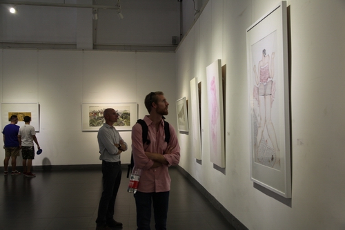 动漫A片党委书记兼副院长郑晓华、党委副书记别敏、副院长王英健、绘画系主任黄华三、设计系主任童岩、办公室副主任钱军等领导嘉宾以及美方师生等共同出席了9月14日下午在798桥艺术空间的开幕仪式。展览日期为9月6日至9月18日。