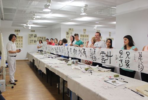 暑期国际小学期(International Summer School)开设的《中国书法入门》课程顺利完成教学。来自英国、芬兰、瑞士、墨西哥、哥斯达黎加等11个国家和地区的19名学生参加了书法课程学习。今年是开班以来的第四期。