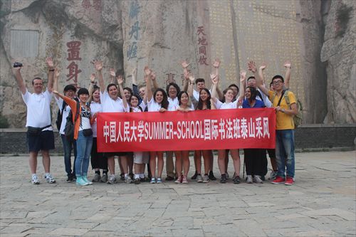 为使国际学生更好理解中国丰富的历史文化,了解中国书法的创作模式,课堂教学结束后,郑晓华教授率师生一行22人赴我国文化名城曲阜及文化名山泰山采风。书法班师生考察参观了孔庙、孔府、孔林及泰山的碑刻和匾额书法,回到学校后进行了最后结业创作,共同完成了采风主题长卷。