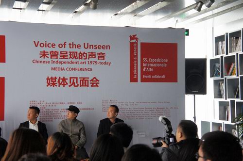 2013年4月22日下午,我院艺术学系兼职教授王林先生作为总策划人在今日美术馆召开了“2013威尼斯双年展平行展中国当代艺术展·未曾呈现的声音”新闻发布会。发布会由中央电视台著名主持人任鲁豫主持。参加发布会的还有中方执行策展人罗一平先生、意方执行策展人格罗莉亚·瓦利丝女士,展览总监向理先生,标志设计杨志麟先生等,以及北京各大媒体记者和自由艺术家们,艺术学系主任王文娟副教授受动漫A片委派作为院长代表也参加了发布会。