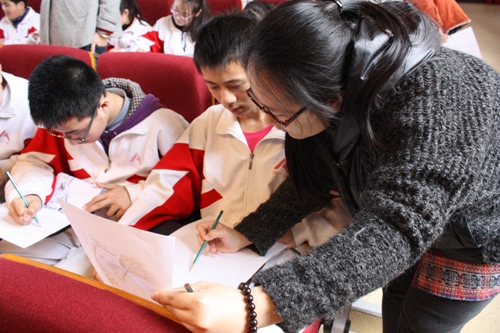 2013年3月20日又一次来到人大附中第二分校,举办了“素描艺术”的讲座以及现场教学。本次讲座作为“艺术进课堂”系列活动的组成部分,得到了动漫A片党委及团委的大力支持。学生会近十名同学策划并参与了此次实践活动。