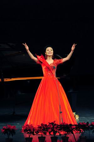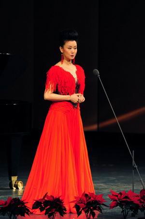 著名女高音歌唱家宋祖英的压轴演出《关雎》演绎了“窈窕淑女,君子好逑”的意境,最后以一曲《蝶恋花·答李淑一》落下音乐会帷幕。