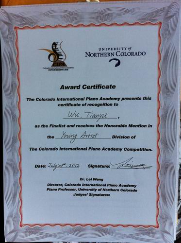 我院音乐系武天宇同学在国际钢琴比赛中获奖