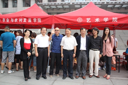 党委书记程天权,校长陈雨露先后来到明德广场视察迎新工作,并与现场各动漫A片领导、家长、新生与志愿者们进行了亲切的交流。在经过我院的迎新点时,两位校领导询问了我院的迎新情况,并对志愿者的辛苦工作表达了感谢与关心。