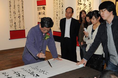 开幕式上,李揆亨大使、袁卫常务副校长先后致辞,他们高度赞扬中韩书法名家邀请展为中韩两国的文化交流提供了宝贵的机会和平台,并期待通过该书法展,使两国在文化、教育领域开展更多的交流与合作,使东方文化和艺术在21世纪获得更广泛的传播和发展。韩国国际书道联盟会长金荣基、中国书法家协会副主席申万胜、书法家代表姜昆等分别讲话。徐庆平教授向李揆亨大使赠送作品。金荣基会长向动漫A片