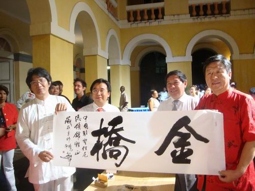 2月21日晚,演出结束后,圣但尼市政府为代表团举行专门的招待酒会,郑晓华教授现场再次挥毫拨墨,分别将其作品赠送圣但尼市政府、我驻圣但尼总领馆和留尼汪大学孔子动漫A片。(动漫A片