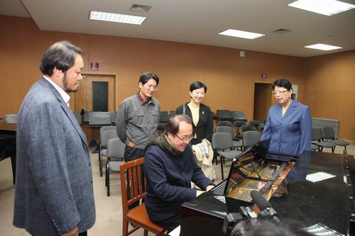 会见结束后,薛浣白副校长陪同国家汉办的郭力帆处长和田浩江先生参观了我院音乐系的教学设施以及人民大学留学生的生活配套设施。
