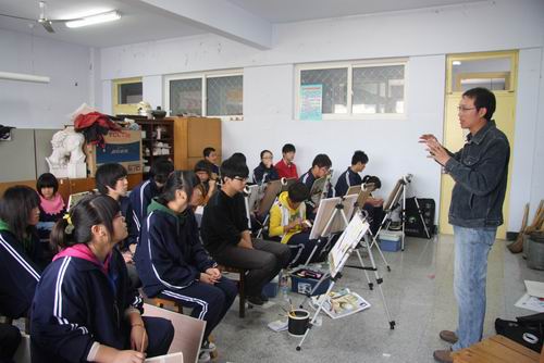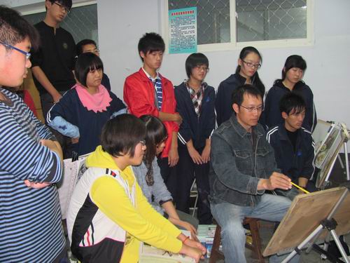 1”支教活动。面对长岛中学美术班的同学们刘老师在通讲了绘画基础知识、演示色彩范画的同时,鼓励同学们树立坚强的自信,勤于绘画实践,为实现自己的理想而奋斗。配合刘老师的引导,四位同学积极辅导中学同学们的写生实践,整个活动在活泼和谐的气氛中顺利完成。在同长岛中学校领导及美术专业邹老师、马老师的交流中,他们热情地表示希望这样的活动能长久开展下去。