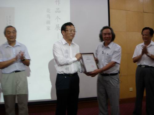 博物馆捐赠了一幅国画作品,学校党委副书记马俊杰教授向画家颁发了人民大学博物馆收藏证书。