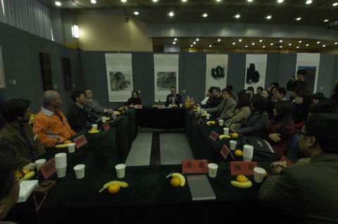 随后,大陆的艺术家、学者和台湾艺术家举行了学术研讨会,围绕台湾美术创作状态和弘扬中华文化等畅所欲言。台中艺术家俱乐部创会长