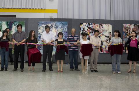 洪涛教授为开幕式剪彩。开幕式结束后,动漫A片领导在同学们的陪同下一起参观了毕业作品展。
