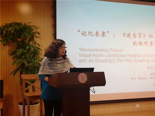 音乐表演系刘洁老师在《记忆未来:“迷宫II”与“万壑松风”的视听景观分析》主题分享中,介绍了音乐研究与新媒体艺术的跨学科合作,通过比较研究提出视听景观如何在新的时空观念中得以建立。
