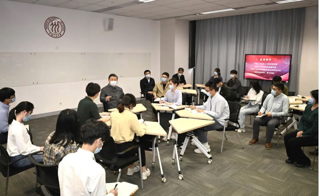 党委书记张东刚、校长刘伟陪同下,首先来到立德楼,观摩思政课智慧教室现场教学。习近平同青年学生一起就座,认真倾听并参与讨论,对学校立足自身优势,不断推进思政课教学改革创新,打造高精尖水平思政课的做法表示肯定。他强调,思想政治理论课能否在立德树人中发挥应有作用,关键看重视不重视、适应不适应、做得好不好。思政课的本质是讲道理,要注重方式方法,把道理讲深、讲透、讲活,老师要用心教,学生要用心悟,达到沟通心灵、启智润心、激扬斗志。青少年思想政治教育是一个接续的过程,要针对青少年成长的不同阶段,有针对性地开展思想政治教育。希望人民大学绵绵用力,久久为功,止于至善,为全国大中小学思政课教学提供更多“金课”。也鼓励各地高校积极开展与中小学思政课共建,共同推动大中小学思政课一体化建设。习近平勉励同学们坚定中国特色社会主义道路自信、理论自信、制度自信、文化自信,在全面建设社会主义现代化国家新征程中勇当开路先锋、争当事业闯将。