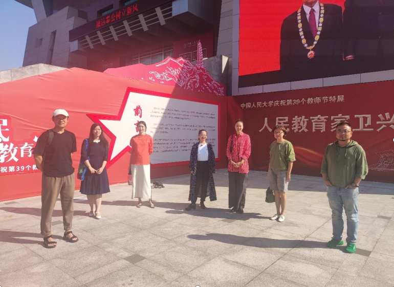 庆祝第39个教师节特展——人民教育家卫兴华、高铭暄”展览,认真学习、感悟人民教育家卫兴华、高铭暄教授的从教生涯和为人民教育事业而不懈奋斗的崇高精神。设计系主任安姚舜副教授还带领学生一起观看学习,并为学生讲解。