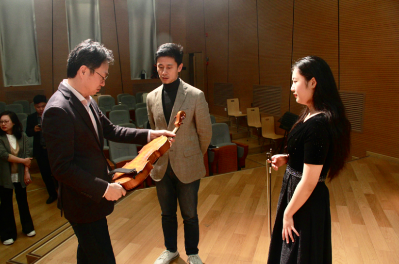 副院长齐悦,音乐系主任刘洁,管乐教研室主任王深,弦乐教研室主任也是本次比赛与音乐会负责人王莹,声乐副教授杨明明,以及特邀的上海四重奏创始成员之一、著名中提琴家李宏刚教授等一同出席了音乐会。