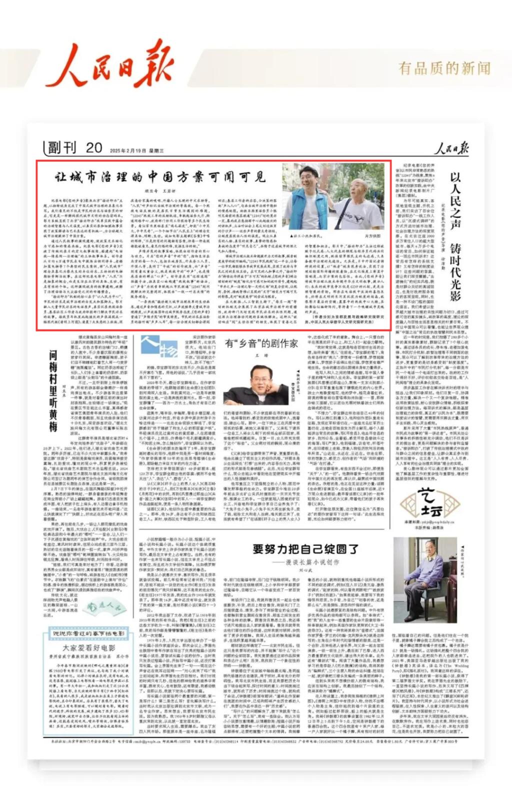 通过人民叙事的微观建构,使政策文本转化为可感知的情感共振。纪录电影《您的声音》突破了传统纪录片的宏大叙事框架,搭建起“电话线—情感网—治理链”的立体叙事体系。创作者从日均6万通市民来电中提炼出胡同停车、老楼加装电梯等7个典型的民生案例,将“人民城市”理念具象化为蔡先生的车位诉求、王奶奶的电梯期盼等鲜活故事。在这部纪录电影中,“人民”不是抽象的概念,而是生活在北京的具体、生动、有名有姓的个体。这种微观视角的叙事建构,破解了治理话语与大众接受之间的传播壁垒。