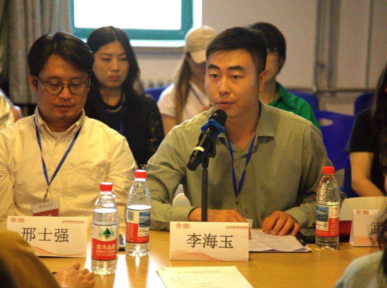 现担任北京市东城区工人文化宫代理主任的李海玉(2019届美术学专业硕士),以“艺术赋能职工文化,助力首都核心区打造文化强磁场”为主题,分享了自己在基层文化工作一线的实践经验,提出艺术工作者应以时代需求为导向,将艺术力量融入城市基层文化建设。李海玉引用导师吴冰副教授的教诲“艺术的高度永远取决于它扎根的深度”,认为文化强国不是抽象的口号,而是在每一次文化服务中传递的文化自信、在每一次创作中落实的使命。他呼吁大家携手同行,让艺术之花在北京、在人民大学绽放得更加绚烂夺目。