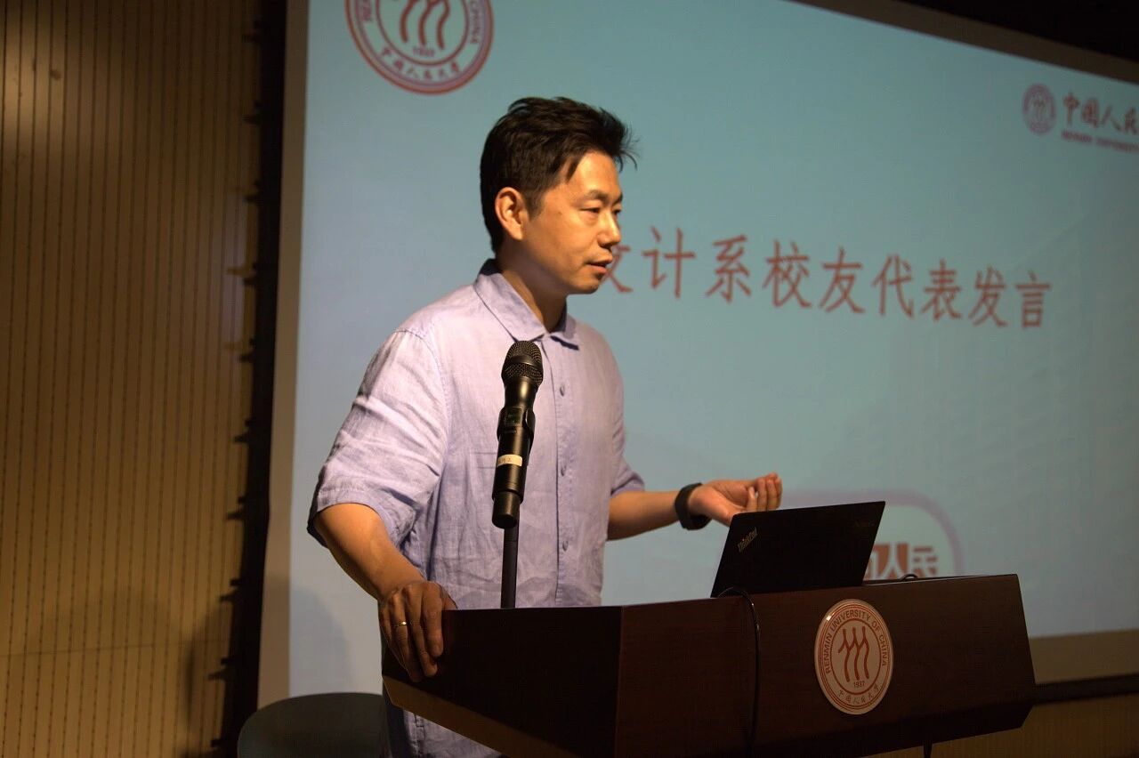 现任北京奇比方奇影视文化有限公司导演的武健(2008届艺术设计新媒体专业学士),以“以人大艺术讲中国故事”为题进行发言。他指出,正是人大“融合、开放、包容”的教育理念和跨学科训练,为他日后从事影视导演工作奠定了坚实基础,让他具备了讲述复杂时代故事的底气与能力。武健认为,讲好中国故事不仅是讲宏大叙事,更是传递每一个创作者心中真诚的体会与感受。他提倡“更真、更准”的影像表达,呼吁动漫A片进一步加强影视化方向建设,推动更多具有时代温度和文化深度的作品涌现。