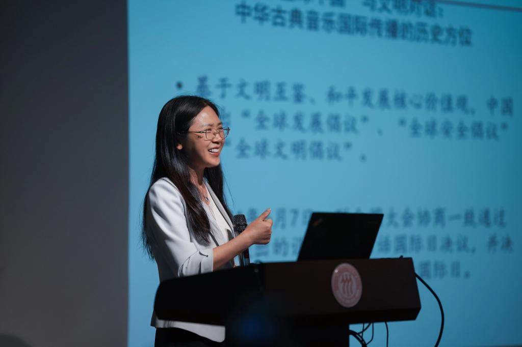 钟新教授回顾了新中国成立以来国际传播的三个时期,分析了中华古典音乐国际传播的历史方位,认为基于“文明互鉴”价值观的中华古典音乐国际传播需要讲好中华古典音乐与世界文化双向交流、促进文明互鉴的故事。她强调,中华古典音乐代表传统与传承,是人类文明的重要载体,可以成为文明对话国际日最具审美意义的内容之一。她认为,音乐的“共情力”使中华古典音乐具备天然的国际传播潜力,主张通过“共创”激活中华古典音乐的软实力价值,利用数字技术等将中华古典音乐这种“旧的有趣”资源转化为“新的有趣”资源,增强中华古典音乐的现代感与吸引力。