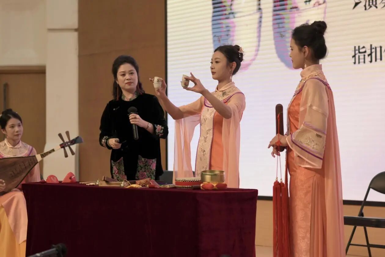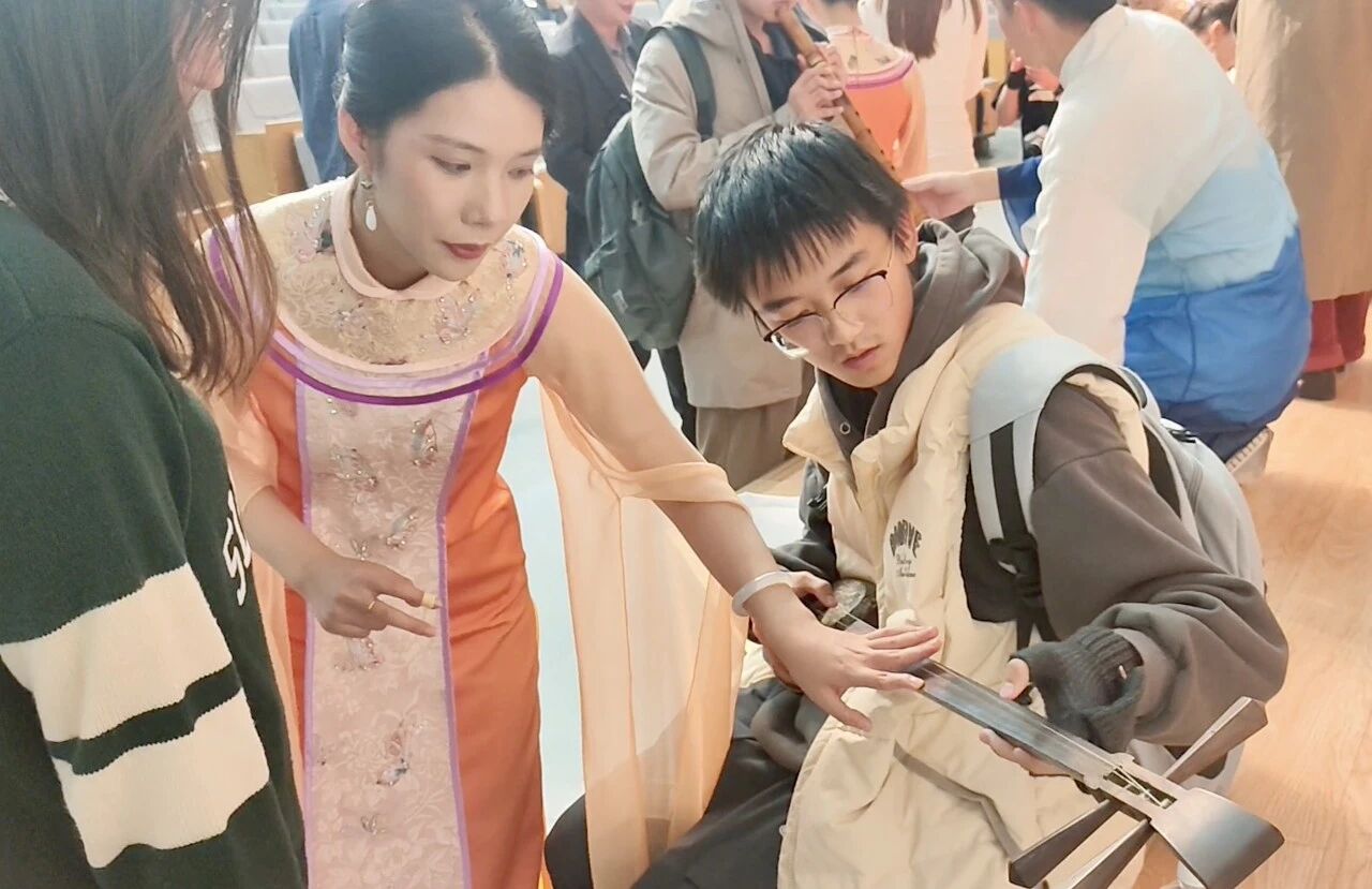 现场观众凝神聆听,同学们展现出对千年古乐的浓厚兴趣与高度专注。演出结束后,学生们主动走向舞台,与来自泉州的南音青年传承人热切交流,探讨工乂谱的识读方式、乐器演奏技巧及南音背后的文化故事。不少同学表示,这是他们第一次“零距离”接触南音,不仅被其婉转典雅的音韵打动,更在跨代际、跨地域的对话中,感受到中华文脉的深厚与包容。