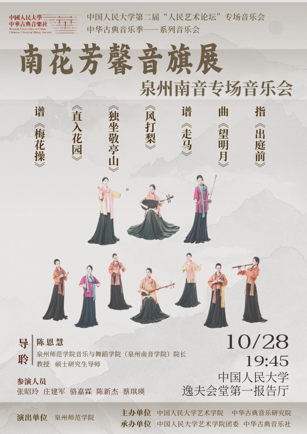 第二届“人民艺术论坛”重要专场演出暨“中华古典音乐季”系列活动的精心力作,《南花芳馨音旗展——泉州南音专场音乐会暨讲演会》圆满举办,以世界非遗“南音”为桥梁,展开一场穿越千年的文明对话,谱写传统与当代交融的华美乐章。