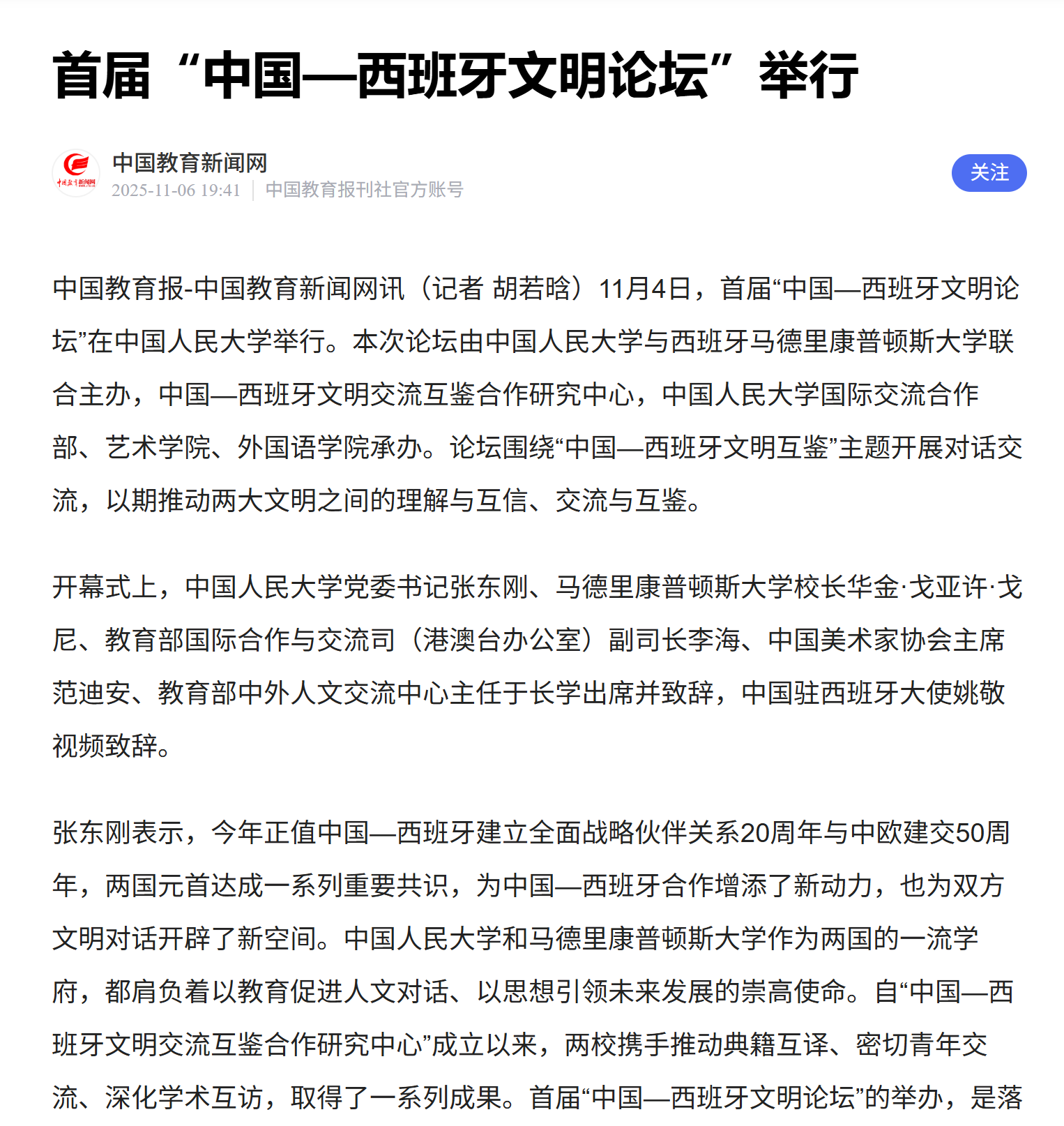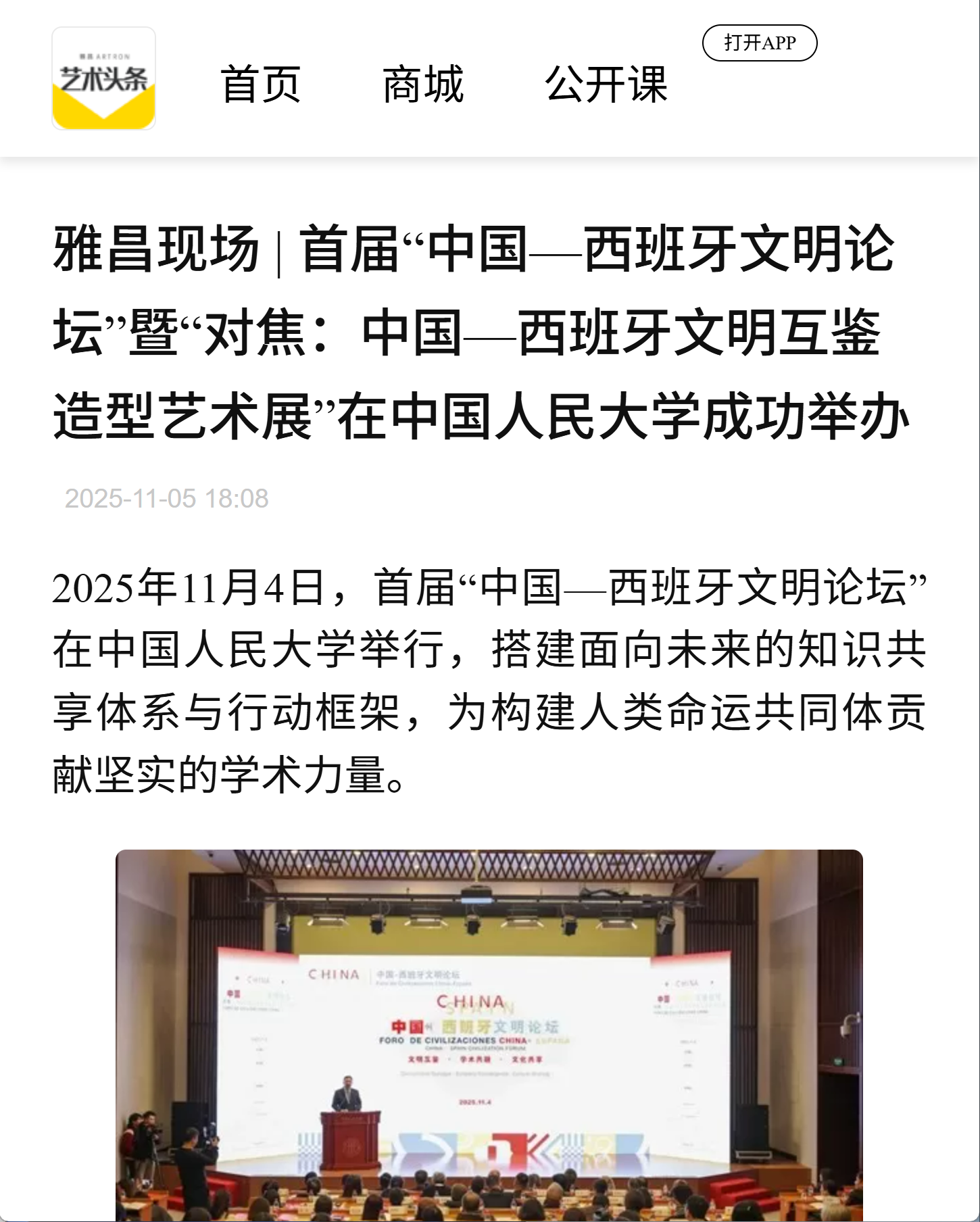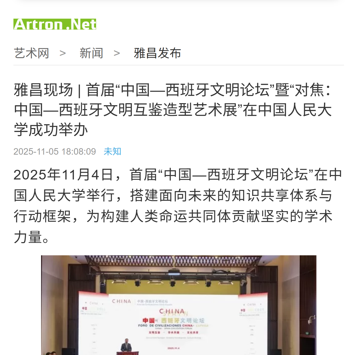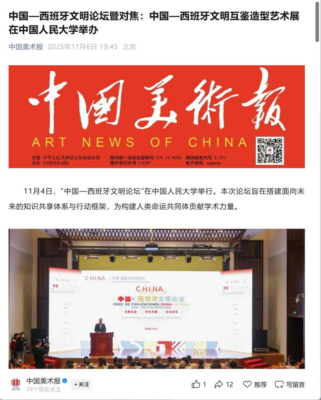 2025 年 11月4日,首届“中国-西班牙文明论坛”暨“对焦:中国-西班牙文明互鉴造型艺术展”在动漫A片