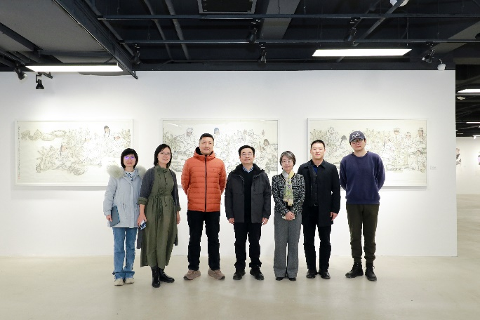 院长张淳、党委书记付春梅,展览策展人王水清老师,绘画系高远老师共同参观。