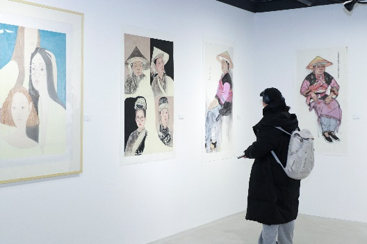 此次展览汇集60余幅师生作品,以人物画为载体,铺展一幅跨越时空的精神长卷。笔墨间,有革命先辈的坚毅风骨,定格百年征程中的精神坐标;有解放区大生产运动中纺线织布的鲜活场面,再现军民同心、自力更生的奋斗图景;有新时代“大先生”的儒雅风范,传承治学育人的初心使命;还有少数民族人物写生的鲜活形象与身边劳动者的质朴身影,让艺术扎根生活、映照当下;更有传统元素与现代人物并置的课题创作,以笔墨在古典意蕴与当代审美间探寻演绎转化之道,彰显中华优秀传统文化的时代生命力。
