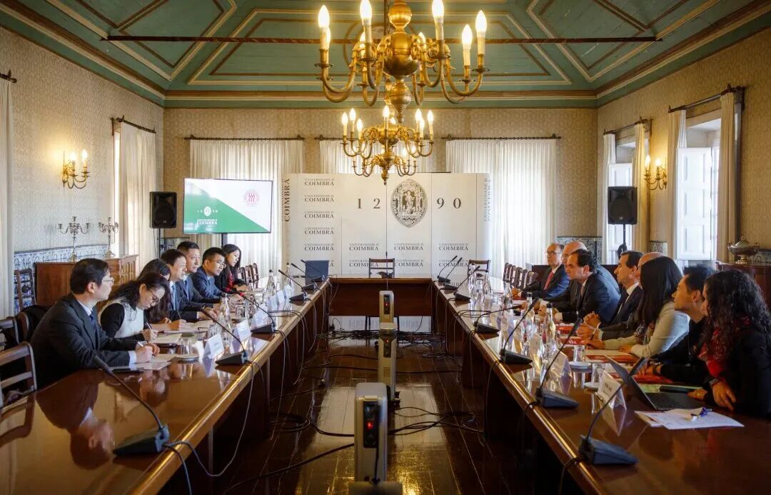 校长马怀德、中国驻葡萄牙大使杨义瑞、科英布拉大学副校长若奥·努诺·卡尔文·达席尔瓦出席仪式并致辞,共同为中葡文明交流互鉴合作研究中心揭牌。