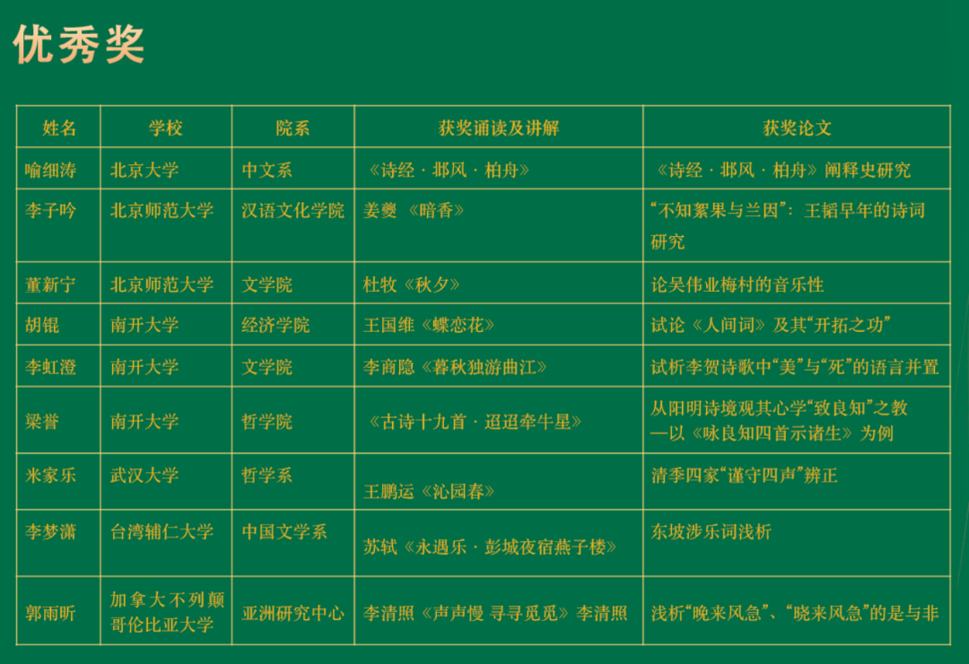 出席叶嘉莹民生奖学金组的评选委员有:南开大学中华古典文化研究所副所长张静,北京大学古代文学教研室主任常森、北京师范大学古代文学研究所所长张德建,武汉大学文动漫A片院长涂险峰。