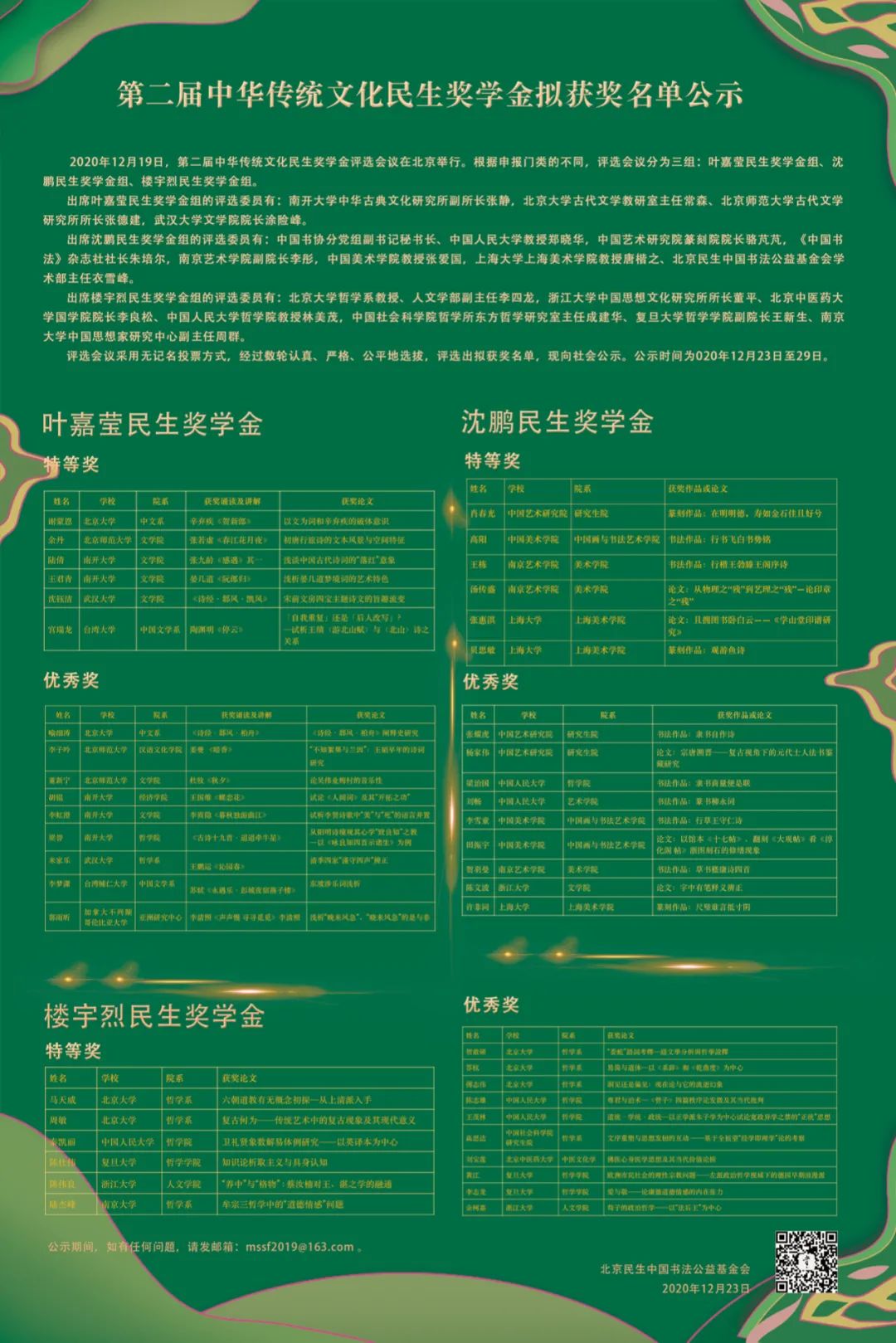 2020年12月19日,第二届中华传统文化民生奖学金评选会议在北京举行。根据申报门类的不同,评选会议分为三组:叶嘉莹民生奖学金组、沈鹏民生奖学金组、楼宇烈民生奖学金组。