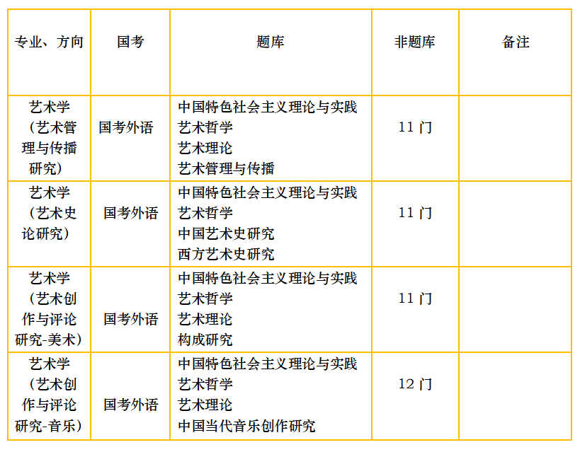 现行艺术学专业下设方向考试科目一览表如下,请各位学员知悉。