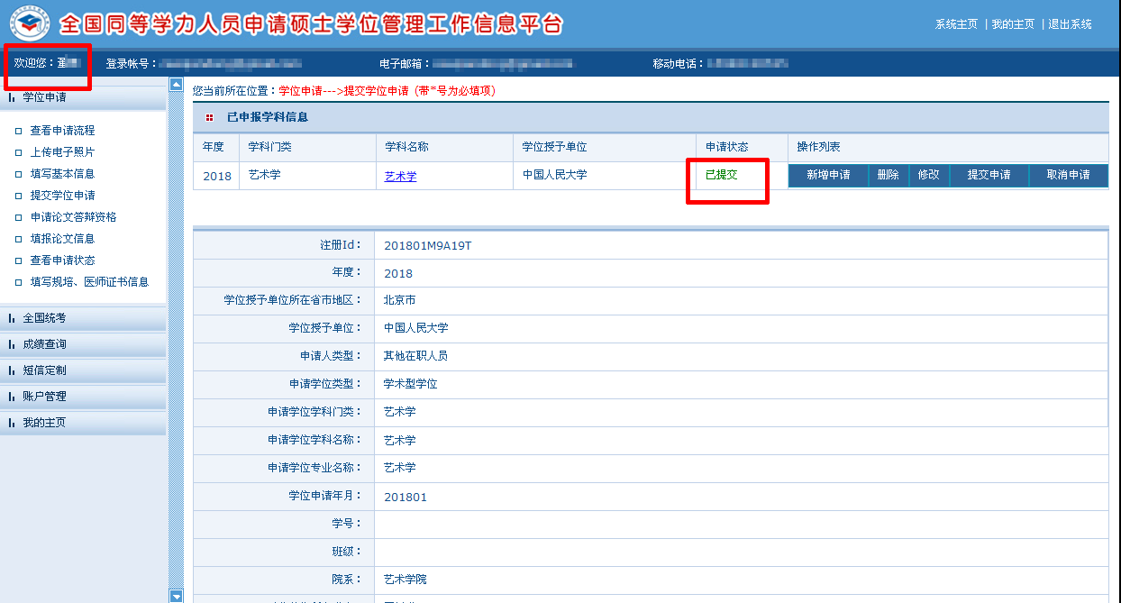 “学位申请年月” : 此项系统自动填写。