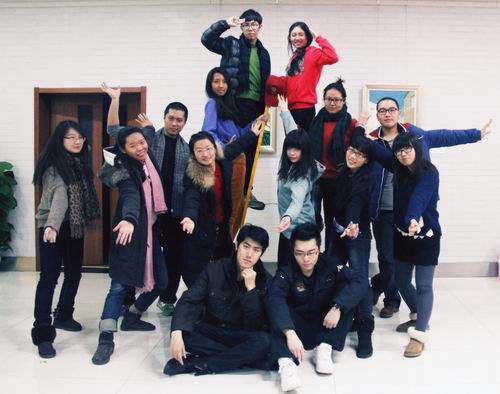 刘明才老师的指导下共同携手完成的,加强了不同专业、不同年级间的交流沟通,增进了两系之间的亲密友谊。同时,也是对艺术管理策划二年级同学专业能力的考验与锻炼。11级第II组的同学在展览原有设置的基础上,首度创新,在九位年轻学子的作品旁附上画家照片及简介,图文并茂地展现给观众艺术作品背后画家生活生动的一面。