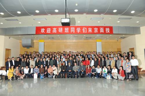 欧阳中石先生应邀来到人民大学,为两期学员作了题为《文化与书法》的学术演讲。他结合自己近期学术研究工作,着重谈了中国汉字和中国书法、书法与中国文化、书法学习中的“学”、专与博等问题,并回答了学员的问题。